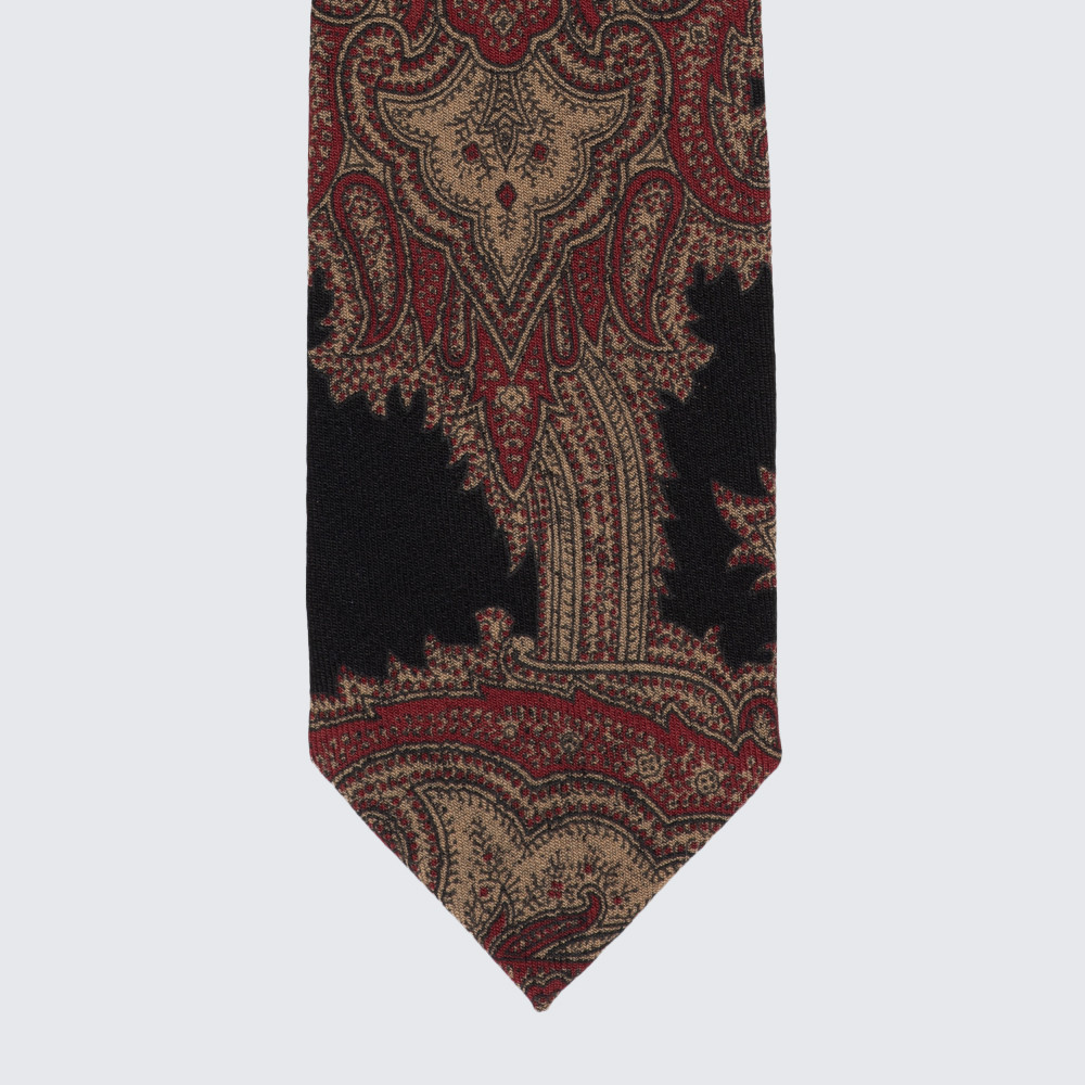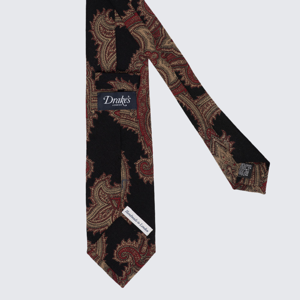 Drake's - Kasmírmintás gyapjú nyakkendő fekete/piros