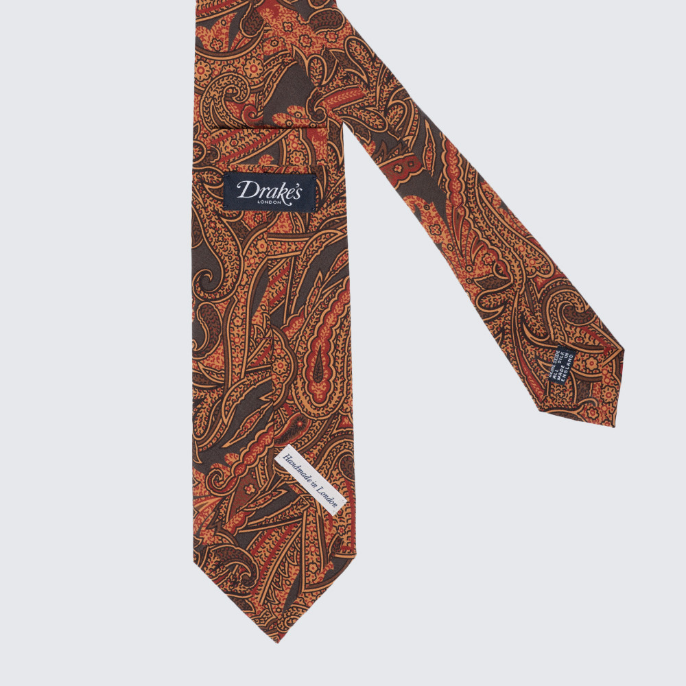 Drake's - Kasmírmintás nyakkendő narancssárga