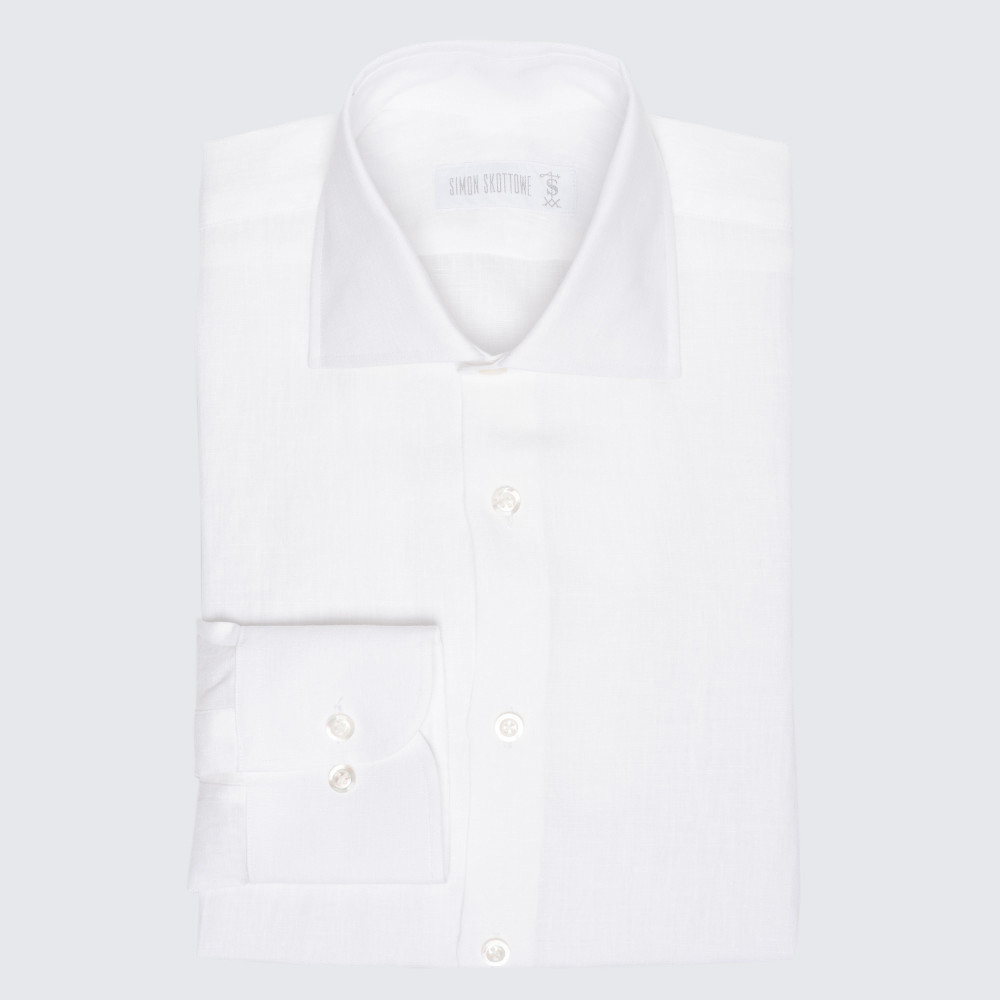 Simon Skottowe - LENVÁSZON SZÉTTERÜLŐ GALLÉROS FÉLIG KARCSÚSÍTOTT ING FEHÉR