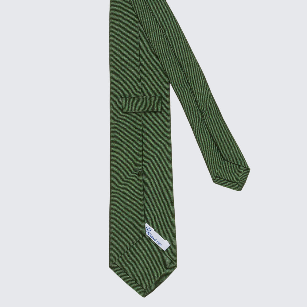 Ez a klasszikus selyem ripsz egyszínű nyakkendő mohazöld színben sokféleképpen kombinálható. A finom, átlós bordázott szerkezet némi felületi érdekességet kölcsönöz anélkül, hogy túldíszített lenne. Mintás zakóval vagy öltönnyel is párosítható, ahol egy összetettebb dizájn túl sok lenne. Alternatívaként az egyszínű nyakkendő merész megjelenést kölcsönöz egy sötét üzleti öltönnyel párosítva, amely az 1980-as évek „power dressing” hangulatát idézi.