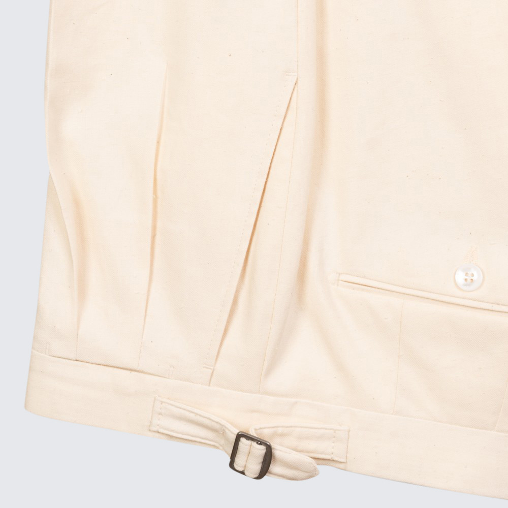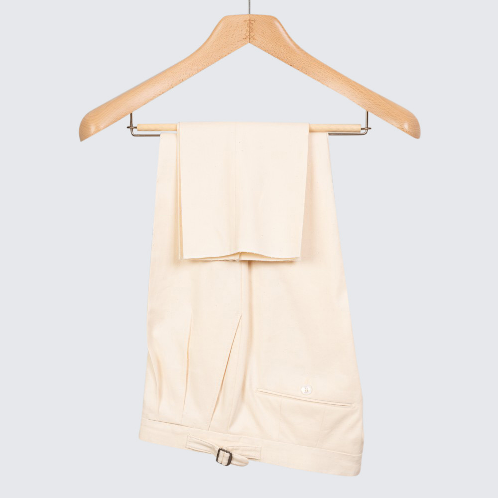 Ez a dupla hajtású nadrág kényelmes szabású, de összességében fenntartja a karcsú sziluettet. Pamut és lenvászon keveréke ez az olasz anyag, ami rendkívül kényelmes a nagy melegben is. Oldalán állítható szűkítőpántja és manapság megszokottnál kicsit magasabb dereka lehetővé teszi viselését testhezálló zakóval vagy az egyik gyönyörűen szabott pólóingünkkel. A 18.5 cm széles alsó szegélynek köszönhetően könnyen párosítható elegáns cipővel és papucscipővel is.