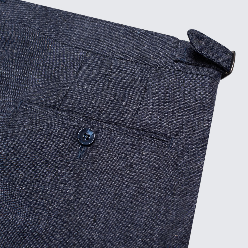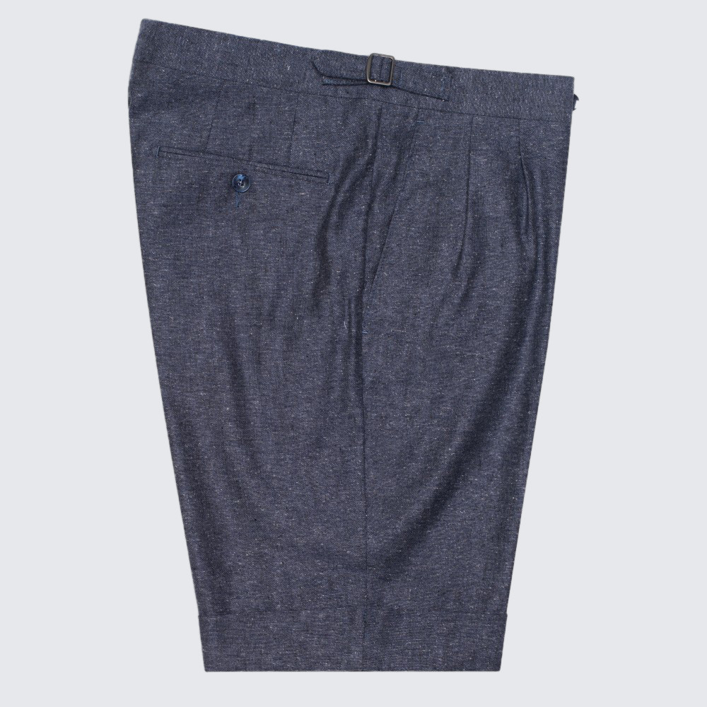 Ez a dupla hajtású rövidnadrág kényelmes szabású, de összességében fenntartja a karcsú sziluettet. Selyem és vászon keveréke ez az olasz anyag, ami kényelmes a nagy melegben is. Oldalán állítható szűkítőpántja és rövid, de elegáns szabása lehetővé teszi, hogy lazább és elegánsabb összeállításokhoz is viselhessük.