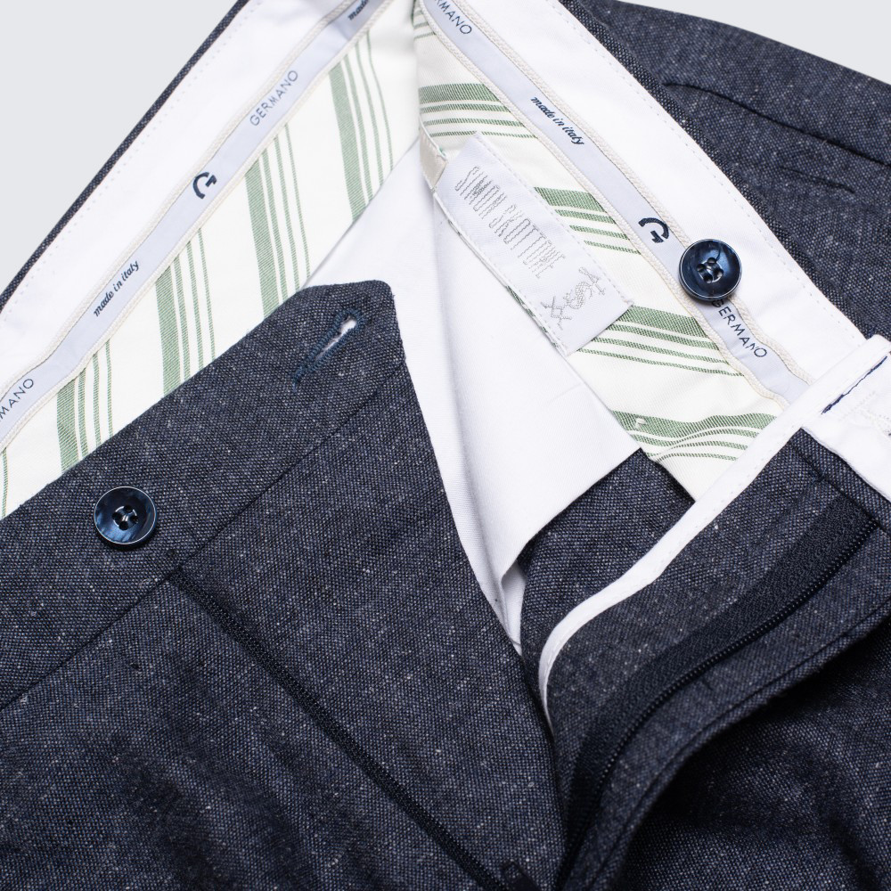 A Simon Skottowe nadrág kollekciót kizárólag Olaszország egyik legnevesebb nadrág manufaktúrájában gyártják. A divat iránti tisztelgésként ez a vonal a klasszikus stílusra és szövetekre épül, mely könnyen párosítható mind méretre szabott zakóval, mind az üzletünkben található egyéb termékekkel. Bővebb információkért kérjük, olvassa el a márkaleírást!