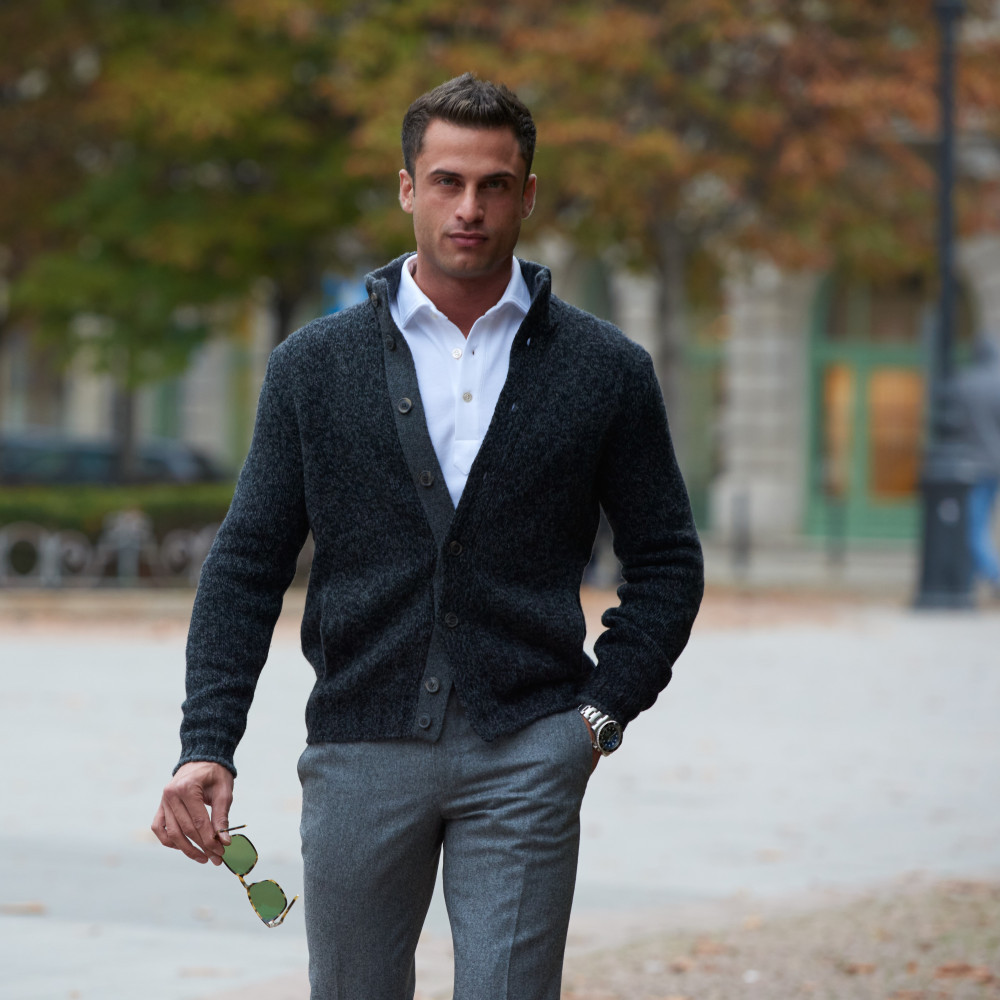 Dieser warme, gemütliche Blouson aus reinem Lambswool von Gran Sasso ist ein vielseitiges Kleidungsstück für Liebhaber des „Preppy“-Looks. Als Jacke getragen, lässt er sich mit verschiedenen Hosen- und Hemd-Kombinationen kombinieren. Zum Beispiel mit Cordhosen und Baumwoll-Flanellhemden oder mit Jeans und Poloshirt.