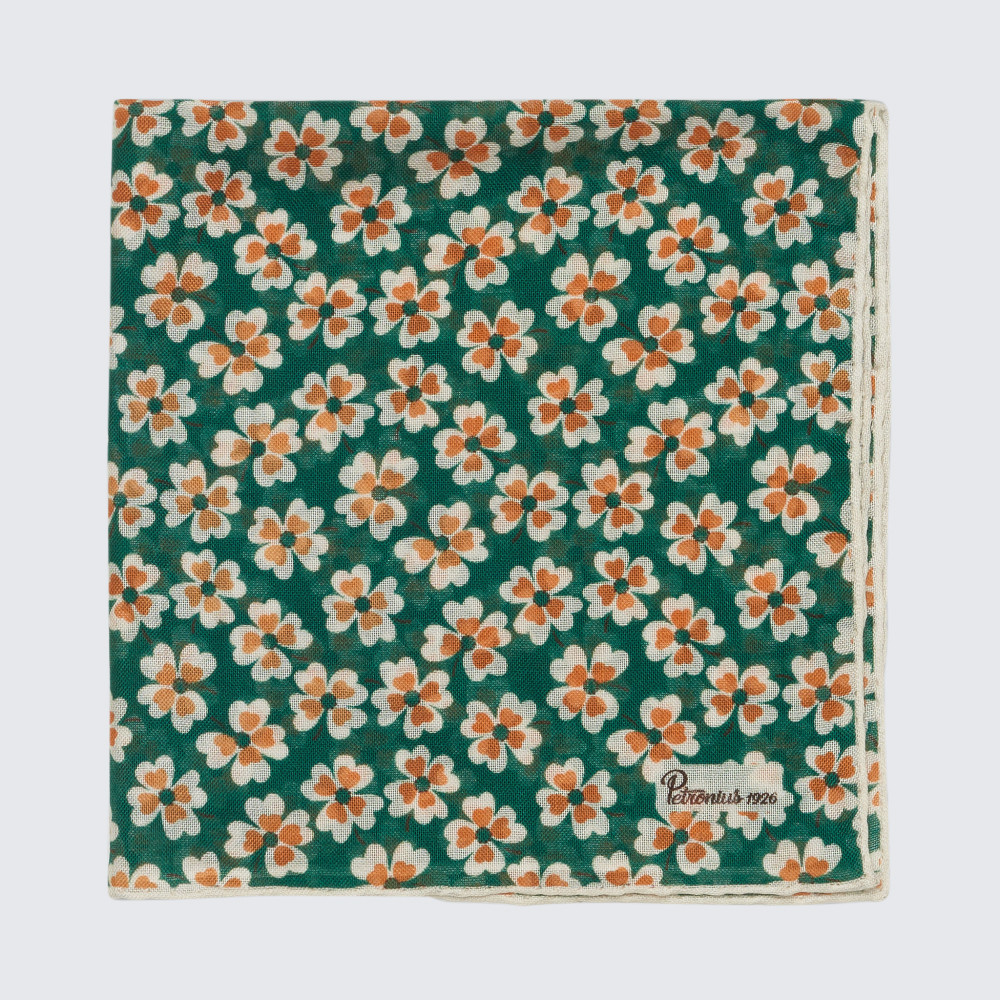 Durch den Druck auf einen feinen Woll-Seiden-Stoff wirken die Farben glänzend, jedoch ohne den Glanz von reiner Seide. Die klassische Größe ermöglicht es, das Design erfolgreich zu präsentieren, ohne zu viel Volumen zu erzeugen. Perfekt, um jedem Stadtanzug einen farbenfrohen Akzent zu verleihen.