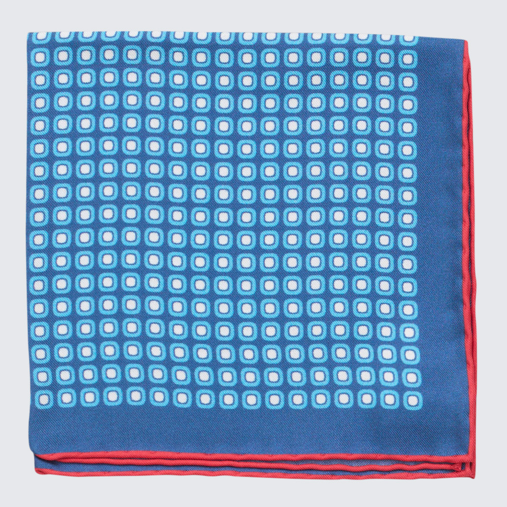 Petronius 1926 – Kék díszzsebkendő piros szegéllyel és geometrikus mintával
